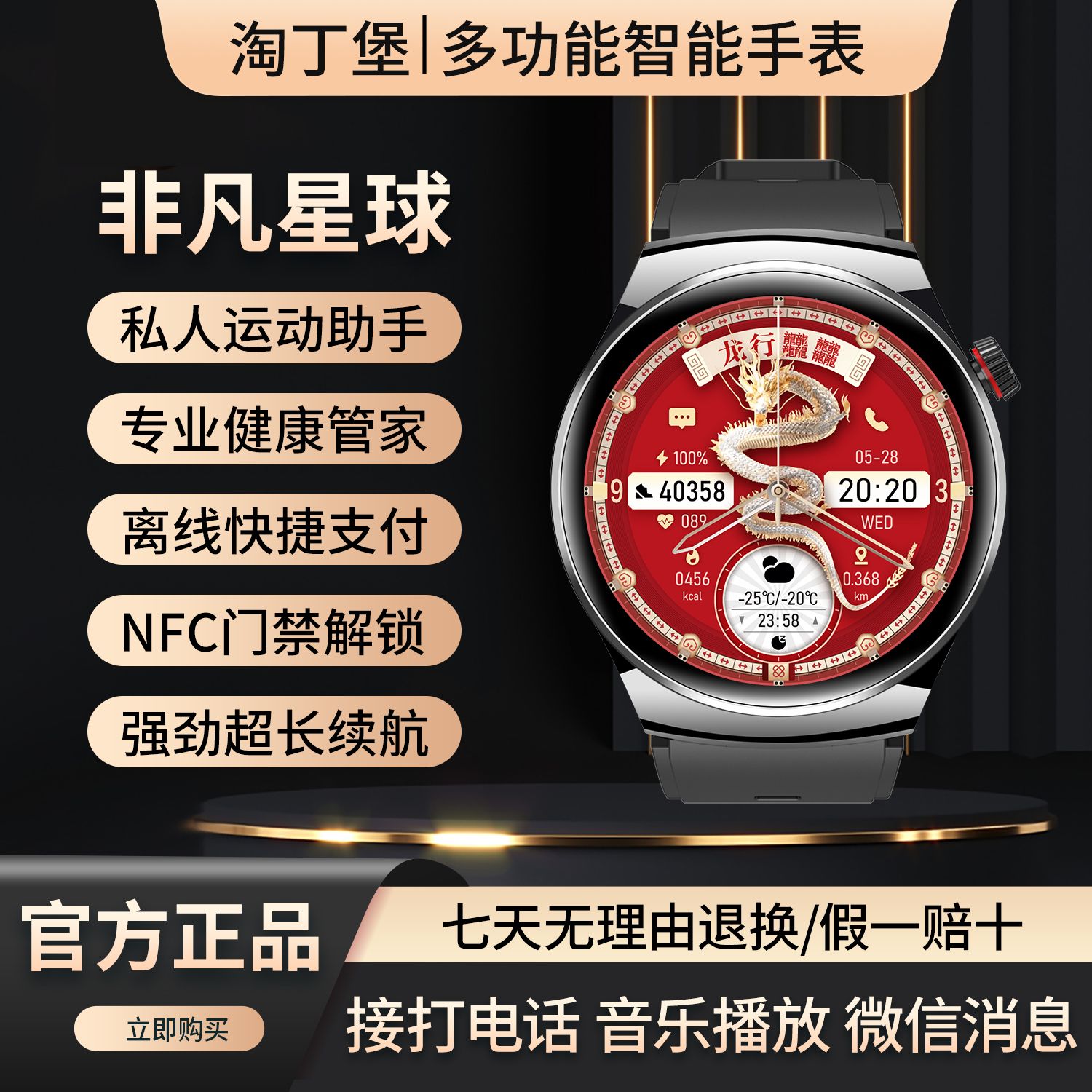 【非凡星球】淘丁堡多功能智能手表NFC门禁支付宝GPS运动健康通话