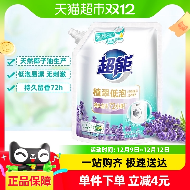 超能洗衣液植翠低泡时尚炫彩1kg袋装学生宿舍家用薰衣草香味持久