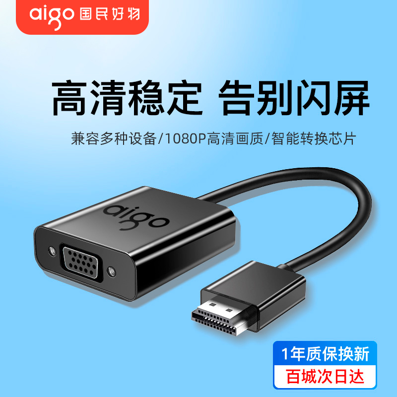 爱国者HDMI转VGA转接线笔记本电脑转换器显示屏投影仪高清连接线