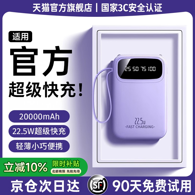 【2025新款】20000毫安充电宝超大容量超薄小巧便携官方旗舰店歌神适用小米苹果专用快充飞机自带线移动电源