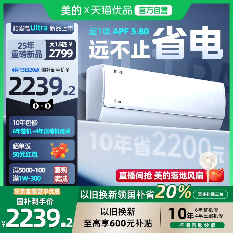 以旧换新补贴美的空调35酷省电1.5匹一级能效卧室家用壁挂机ultra