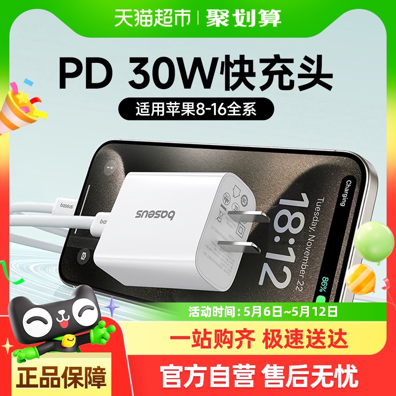 倍思20W充电器头适用苹果15promax充电头快充30W套装