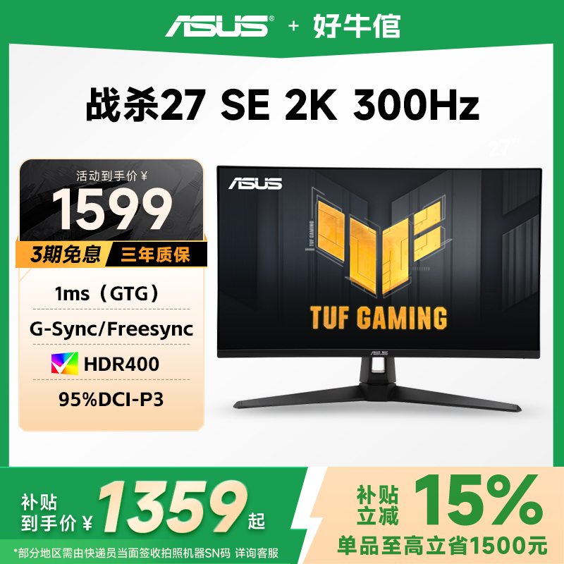 华硕TUF电竞27英寸2K300HZ电竞显示器VG27AQM5A战杀27游戏显示屏