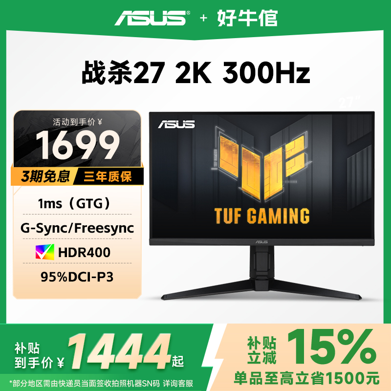 华硕TUF VG27AQML5A 27寸2K300Hz电竞显示器Fast IPS 游戏显示屏