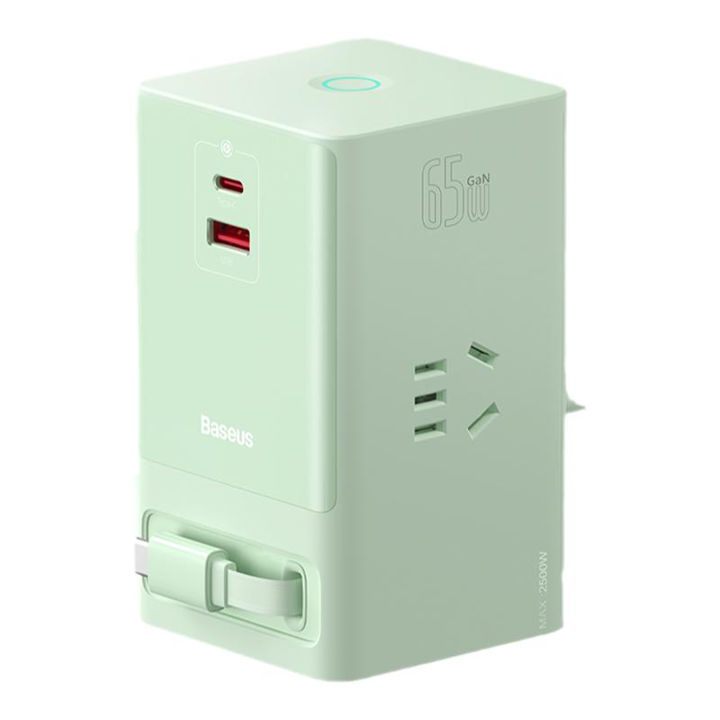 倍思65W氮化镓桌面充电站自带线伸缩充电器适用苹果16手机笔记本电脑充电头typec快充插头智能插座多口多功能