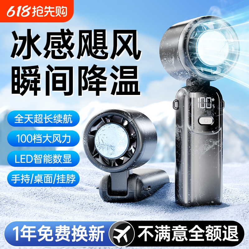 2025年新款手持小风扇无叶涡轮制冷小空调冷风冰敷手持风扇便携式随身小型迷你usb充电式静音电风扇降温神器