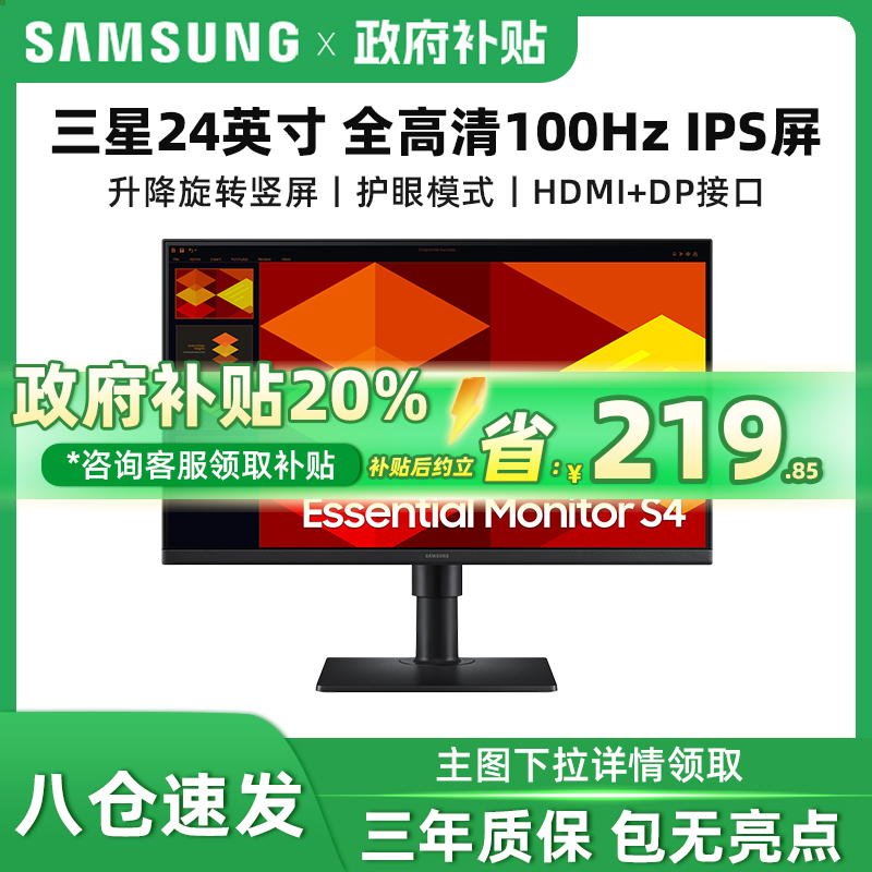 【政府补贴20%】三星显示器24英寸100Hz电竞IPS办公屏 S24D400GAC