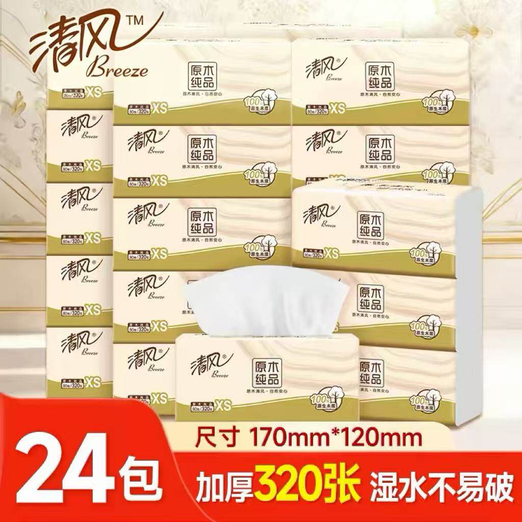 清风抽纸抽式纸巾4层320张实惠装家庭用餐巾纸厕所卫生用纸一分钱