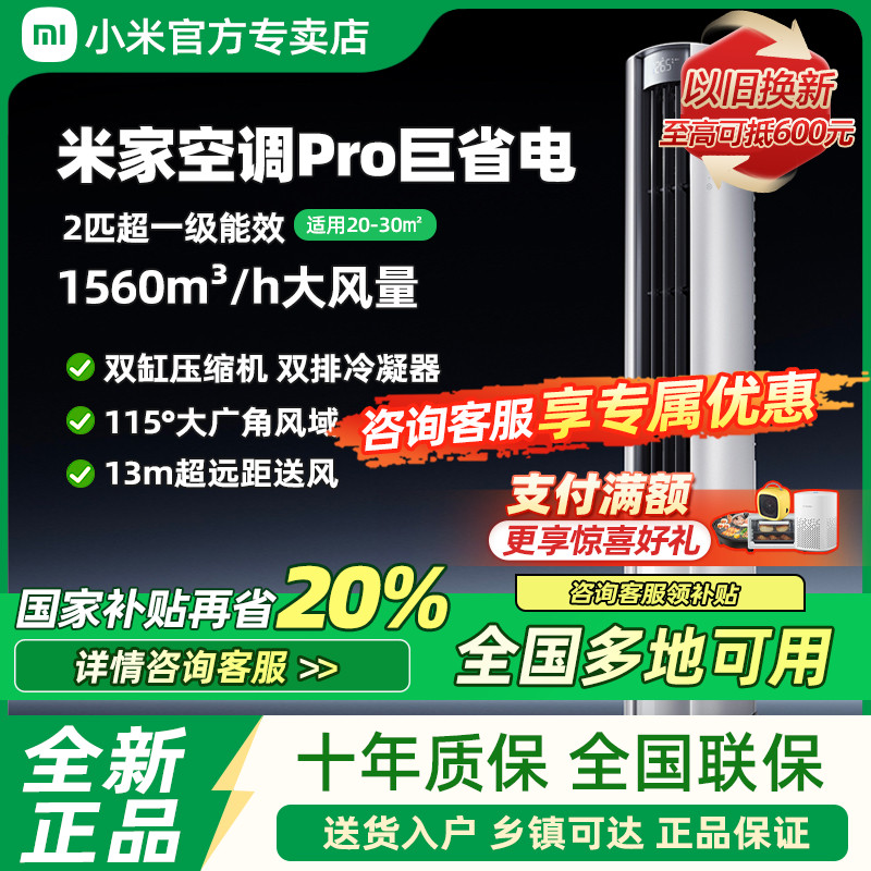 小米米家空调巨省电Pro2匹超一级能效大风口柜机变频家用客厅冷暖