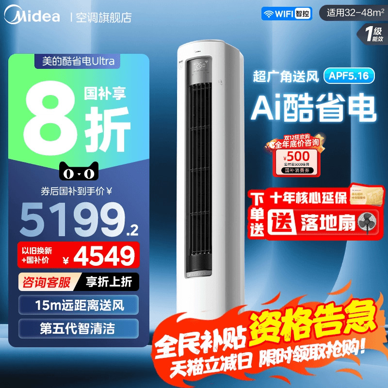 美的空调酷省电Ultra一级省电2匹3匹立式柜机家用客厅变频冷暖