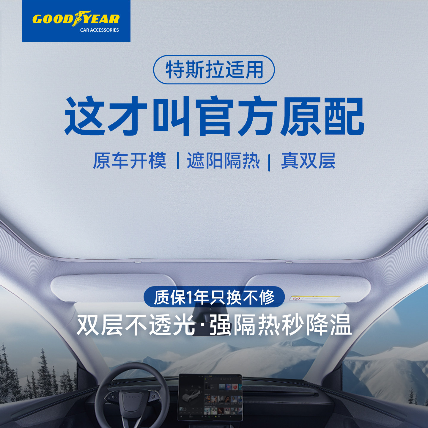 固特异遮阳帘遮阳挡适用特斯拉ModelY/3/YL天窗车顶防晒隔热天幕