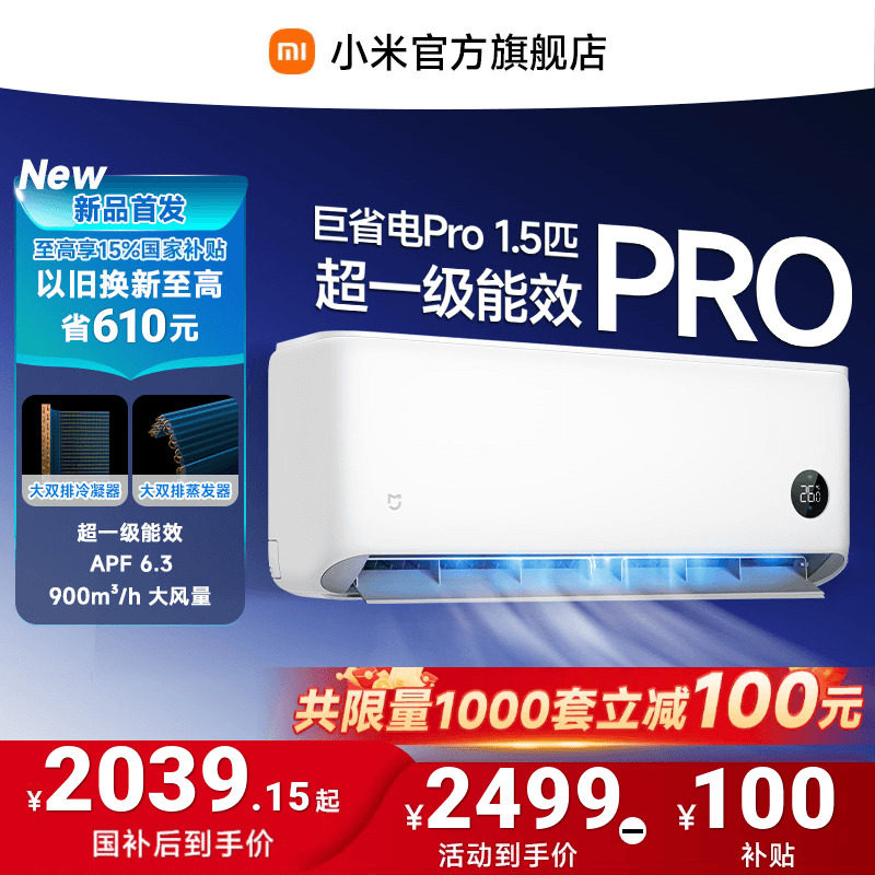 小米米家空调巨省电Pro挂机1.5匹超一级能效