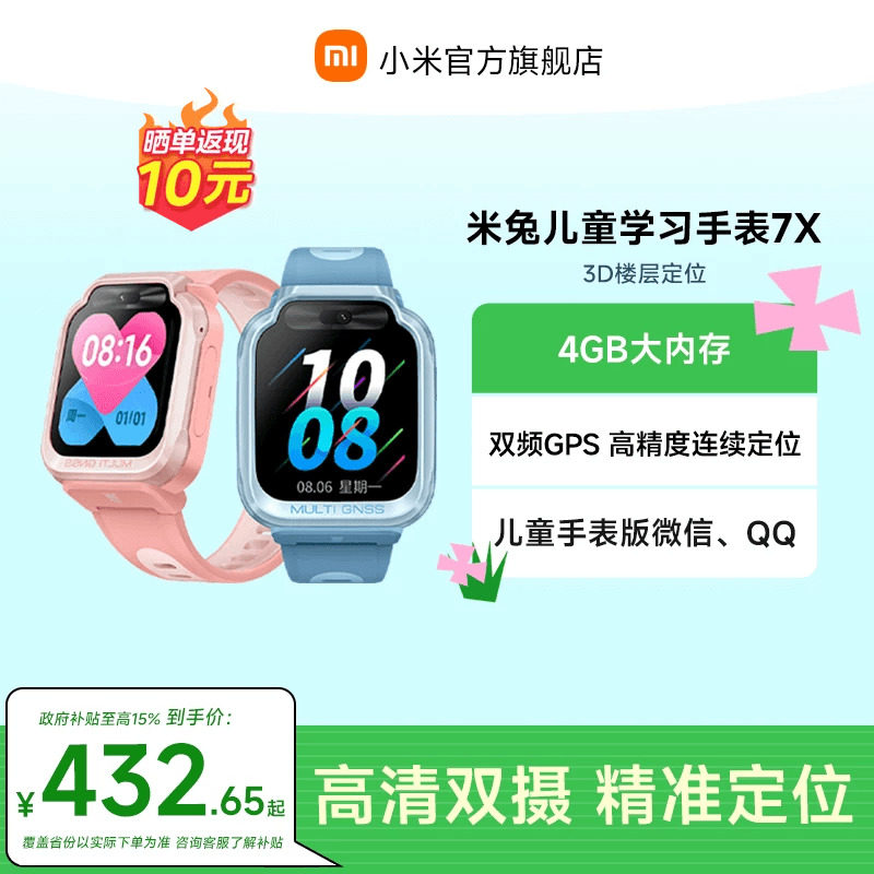 【国家补贴至高15%】小米米兔儿童电话手表7X高清双摄大屏3D楼层定位儿童微信小学生男女孩智能官方正品礼物