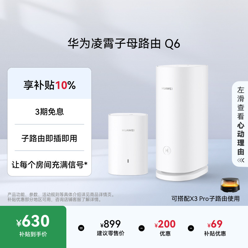 华为凌霄子母路由Q6子母路由全覆盖 灵犀双WiFi 每个房间都有满格信号电线变网线路由器 儿童上网关怀