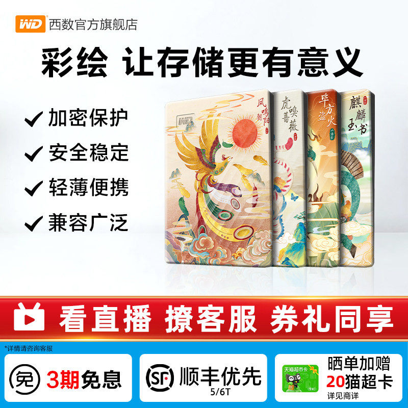 WD西数移动硬盘5t电脑外置外接机械大容量存储彩绘 生肖祥瑞篇