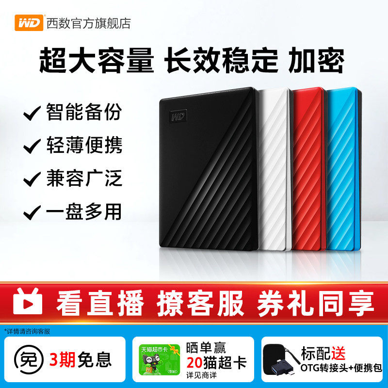 WD西部数据移动硬盘4t加密正品外接电脑手机外置存储4tb备份官方