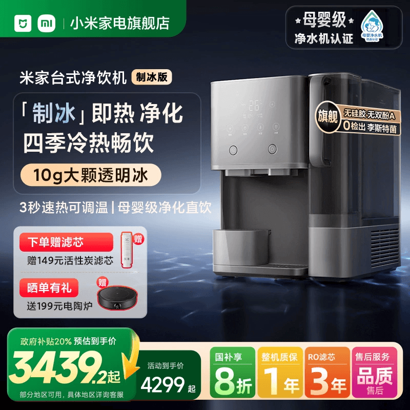小米家电米家台式净饮机制冰版净水器家用免安装直饮即热净饮水机