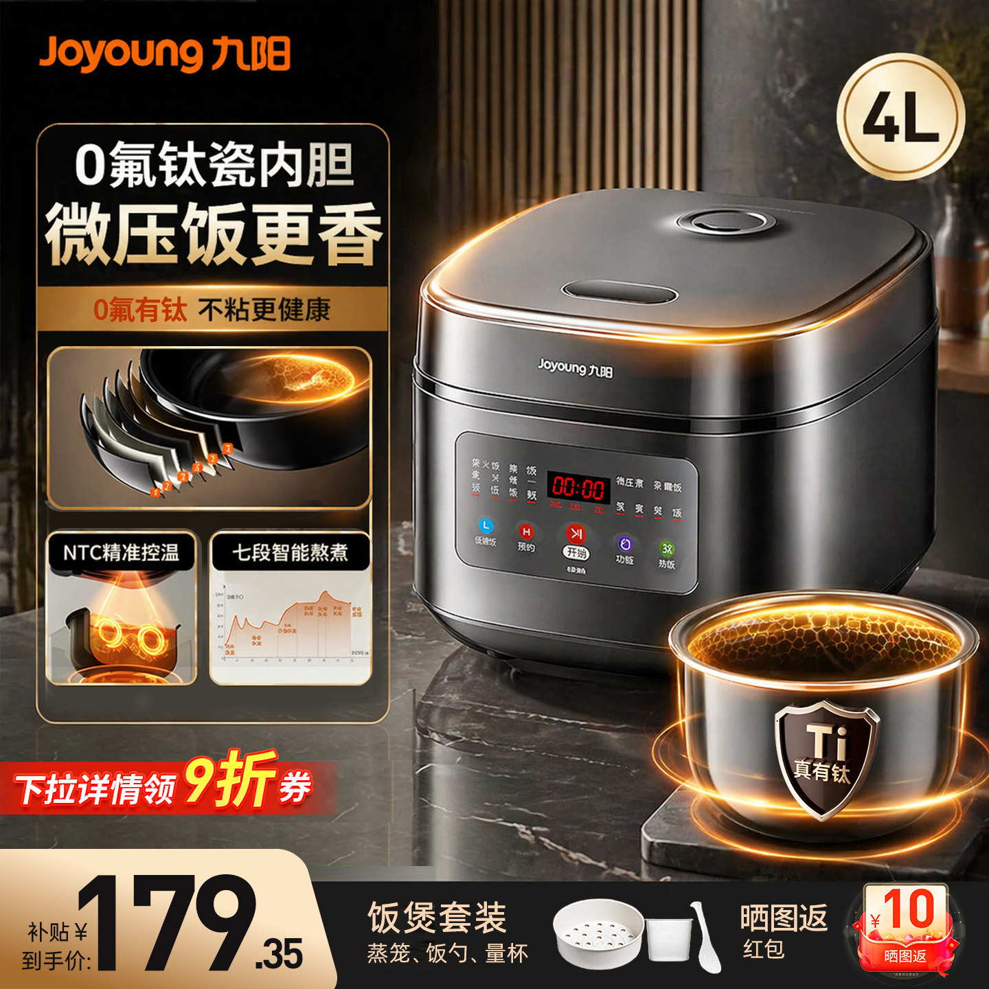 政府补贴九阳电饭煲家用4L大容量3-4人5微压电饭锅官方旗舰店正品
