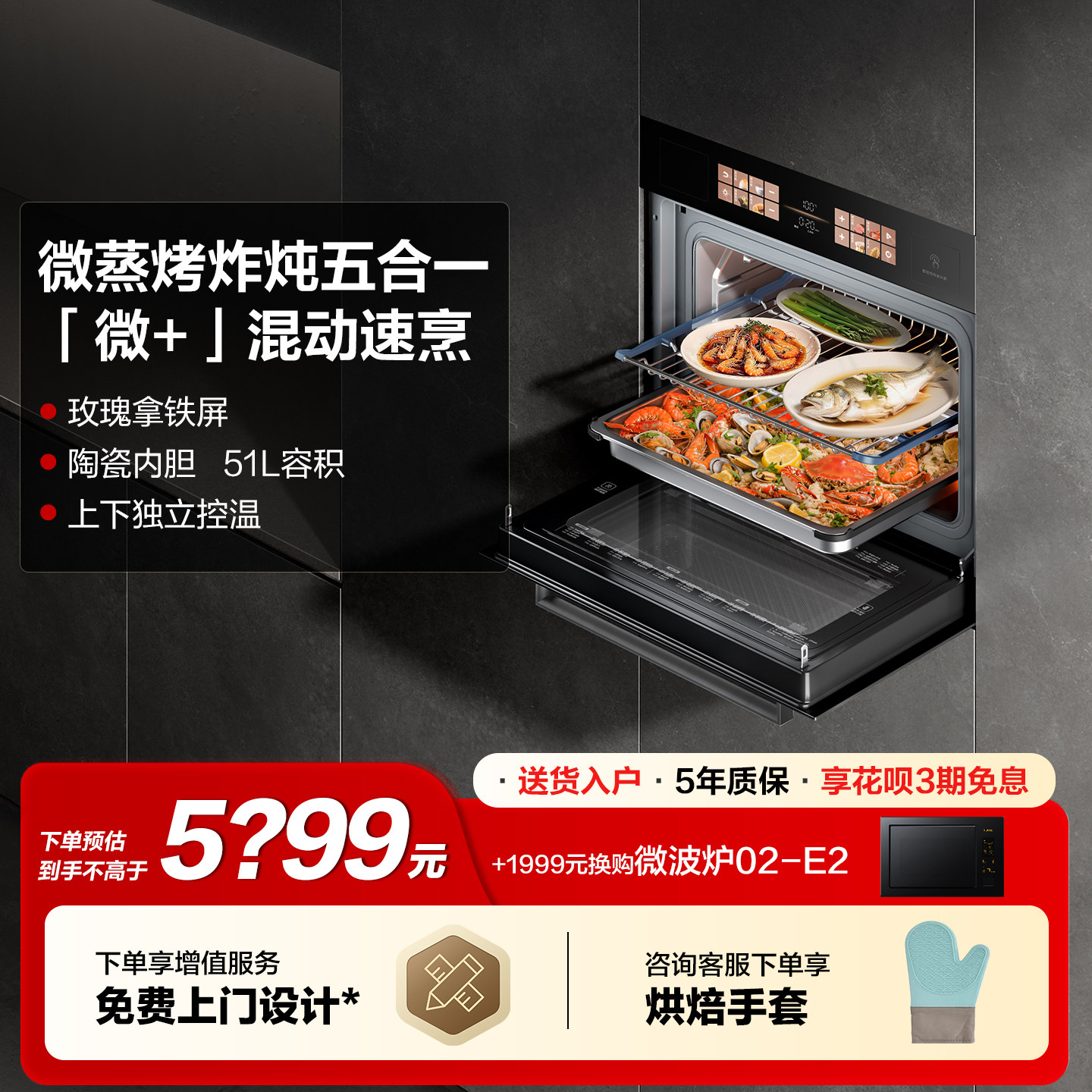 方太微蒸烤一体机G2P嵌入式电蒸箱电烤箱微波炉家用家电