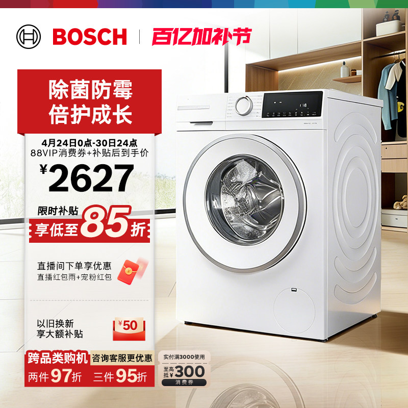 【咨询更优惠】博世官方4系果然白10kg全自动家用滚筒洗衣机