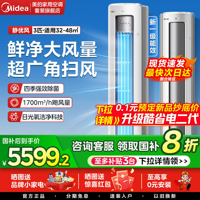 【家电券】美的空调2P3匹立式一级变频制冷暖客厅柜机官方旗舰店