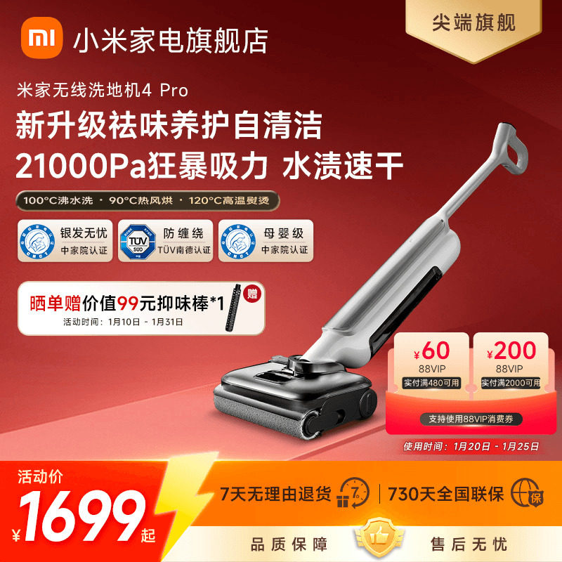 米家无线洗地机4Pro平躺平双贴边防缠绕小米家电
