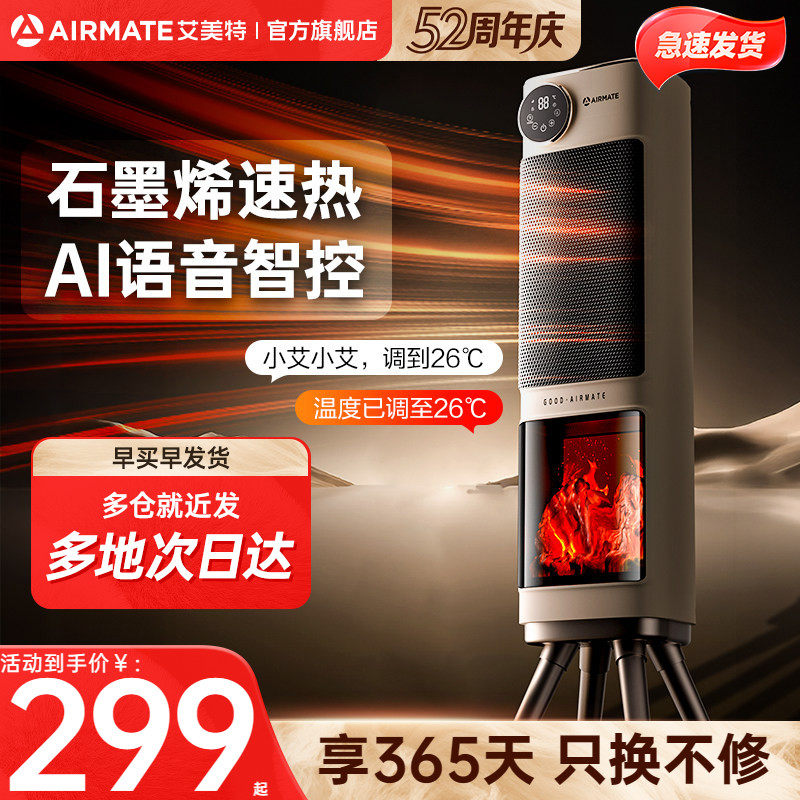 艾美特暖风机取暖器家用节能石墨烯电暖器壁炉烤火炉小太阳家电