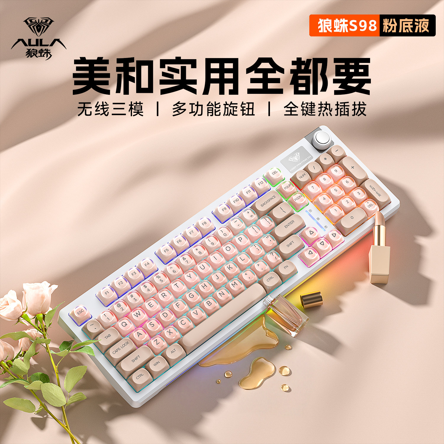 狼蛛S98口红粉底液机械键盘鼠标套装无线女生高颜值有线办公打字