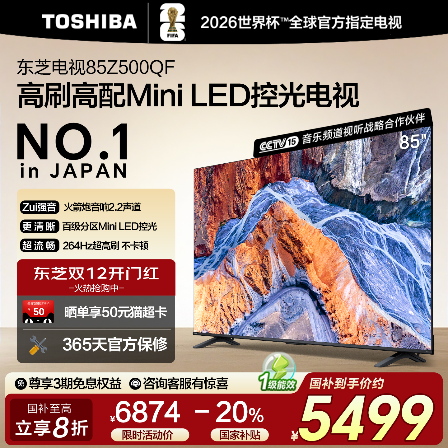 东芝85英寸128G 144Hz超薄Mini LED控光智能电视机家电补贴Z500QF