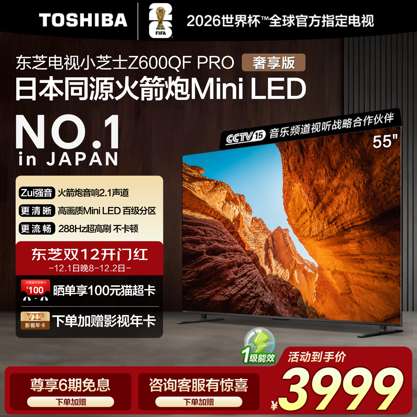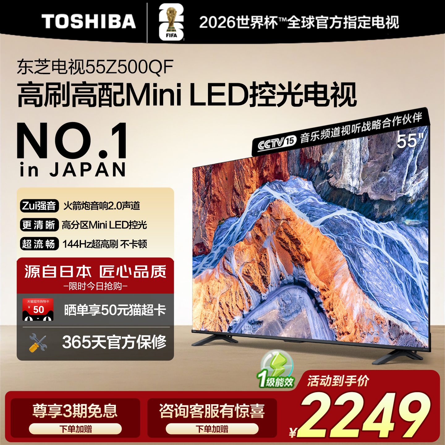 东芝55英寸高画质Mini LED火箭炮电视机家电补贴Z600QF PRO小芝士