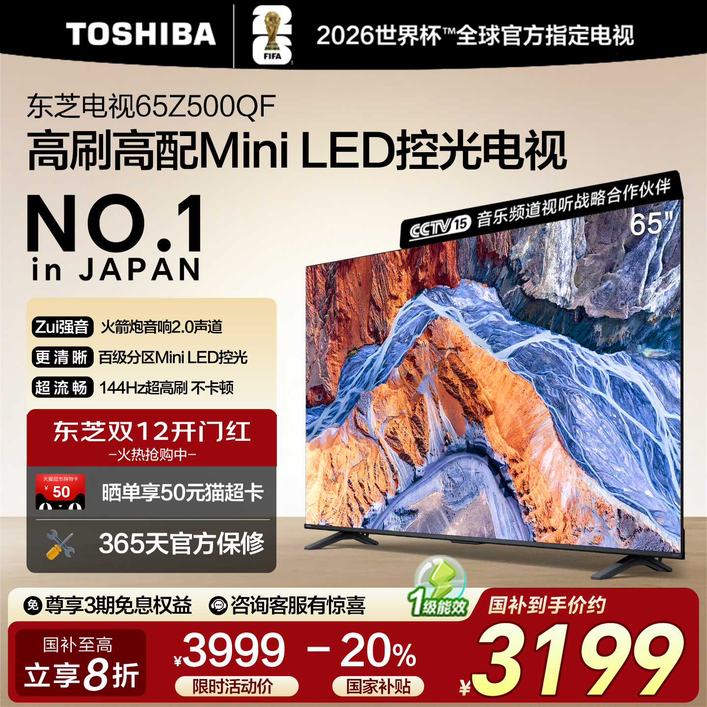 东芝65英寸128G 144Hz超薄Mini LED控光智能电视机家电补贴Z500QF