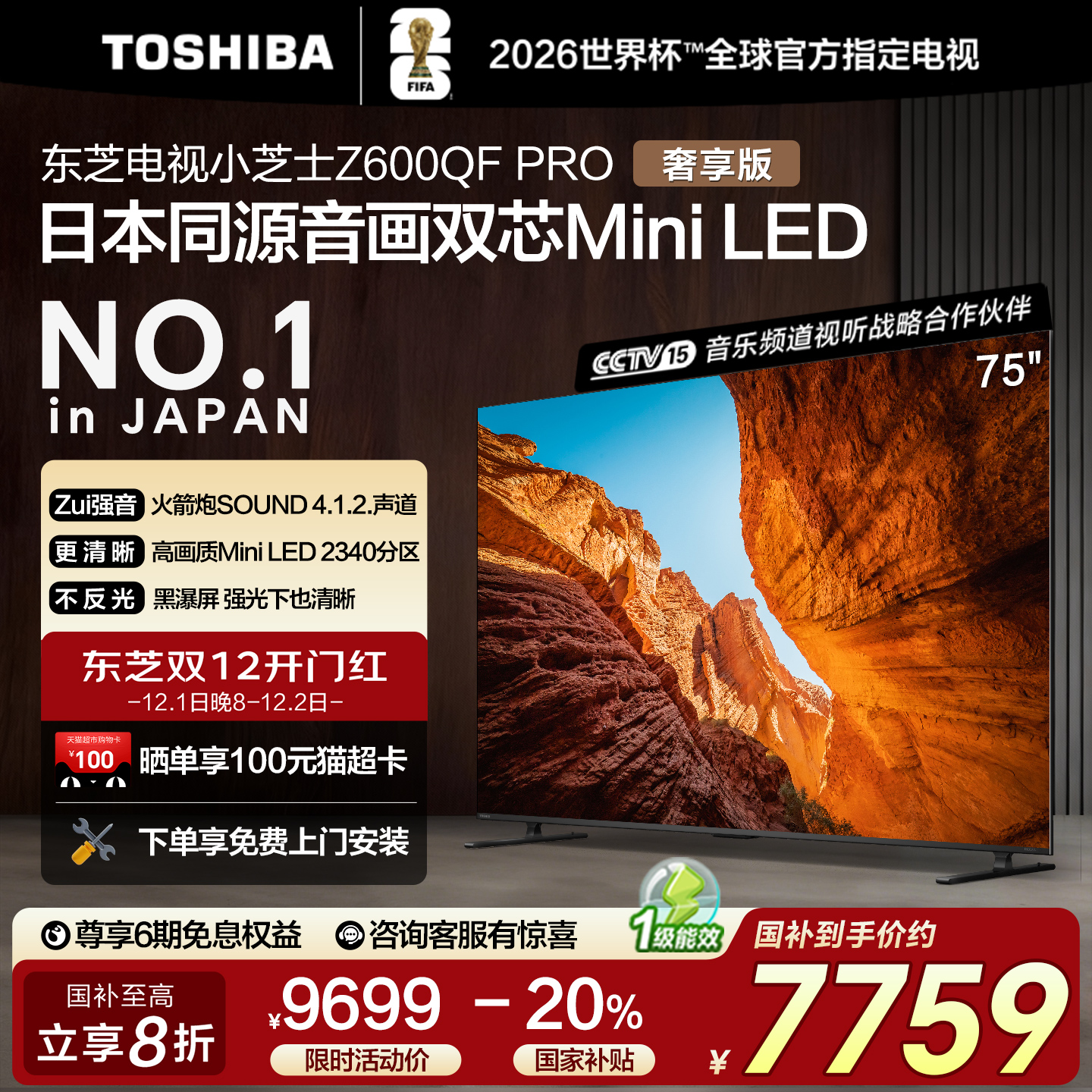 东芝75英寸双芯Mini LED 火箭炮电视机 家电补贴Z600QF PRO小芝士