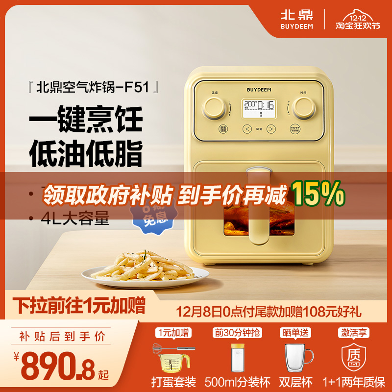 *【补贴15%】北鼎空气炸锅多功能可视大容量金属内胆小家电F51