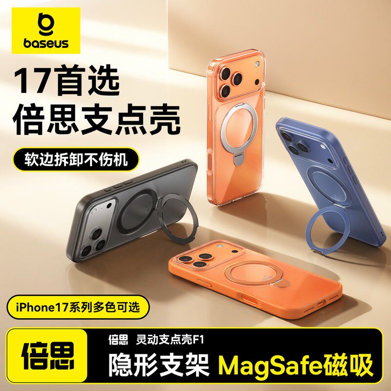 倍思支点壳适用苹果17ProMax手机壳iPhone16带支架15Pro保护套iPhone13高级14新款Magsafe气囊防摔透明磁吸壳