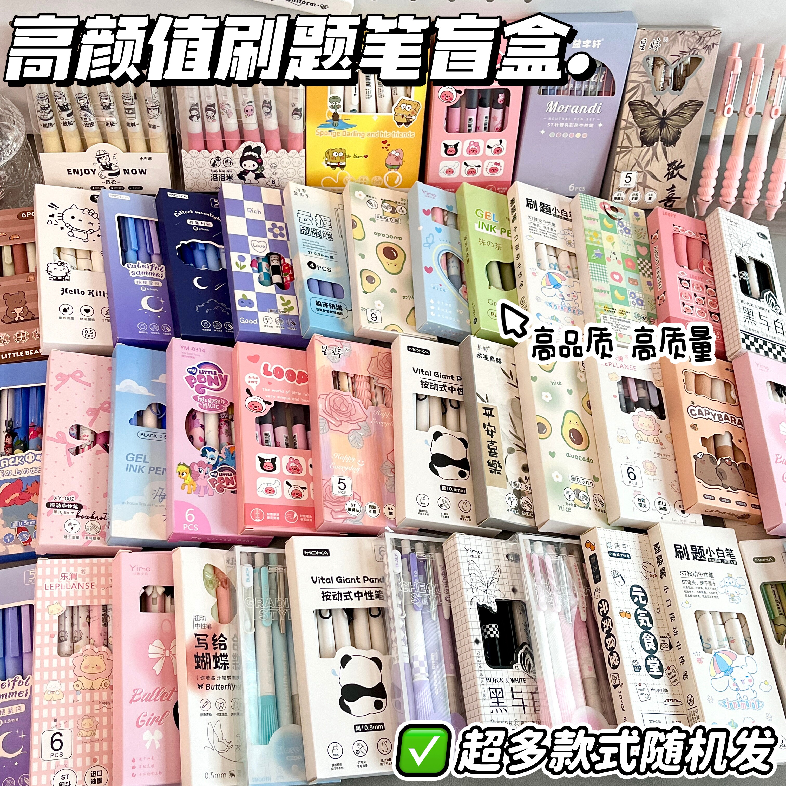 盲盒福袋高颜值多巴胺中性笔巨便宜好质量速干刷题ins风黑笔学生专用高品质礼物盲盒奖励文具盲盒书写不断墨