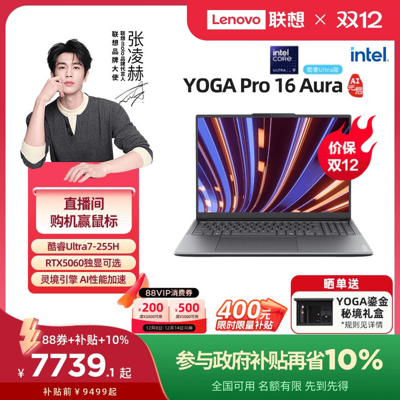 【88券+限时补贴+政府补贴10%】联想YOGA Pro16 Aura AI元启 酷睿Ultra7-255H/RTX5060可选轻薄本笔记本电脑