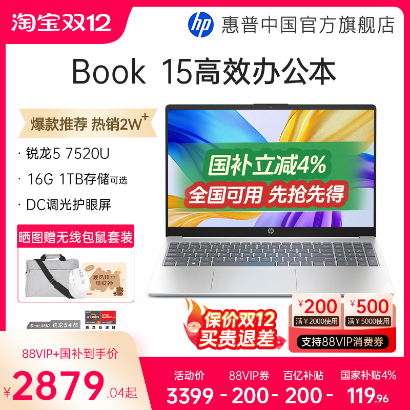 【百补加补+88VIP+4%国补】HP/惠普可选星Book 14/15锐龙 7000系处理器笔记本电脑轻薄学生办公本惠普官方店