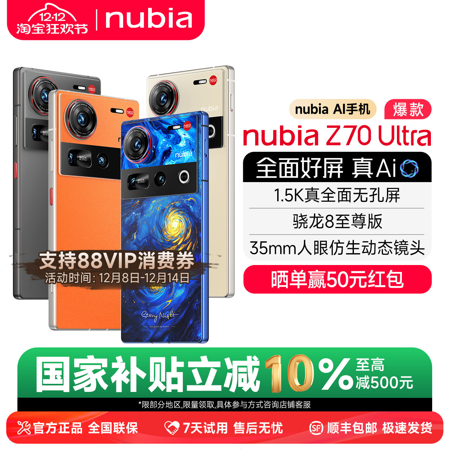 【支持消费券赠保护壳】努比亚Z70Ultra屏下摄像真全面屏手机骁龙8至尊版防水游戏手机努比亚z70ultra旗舰店