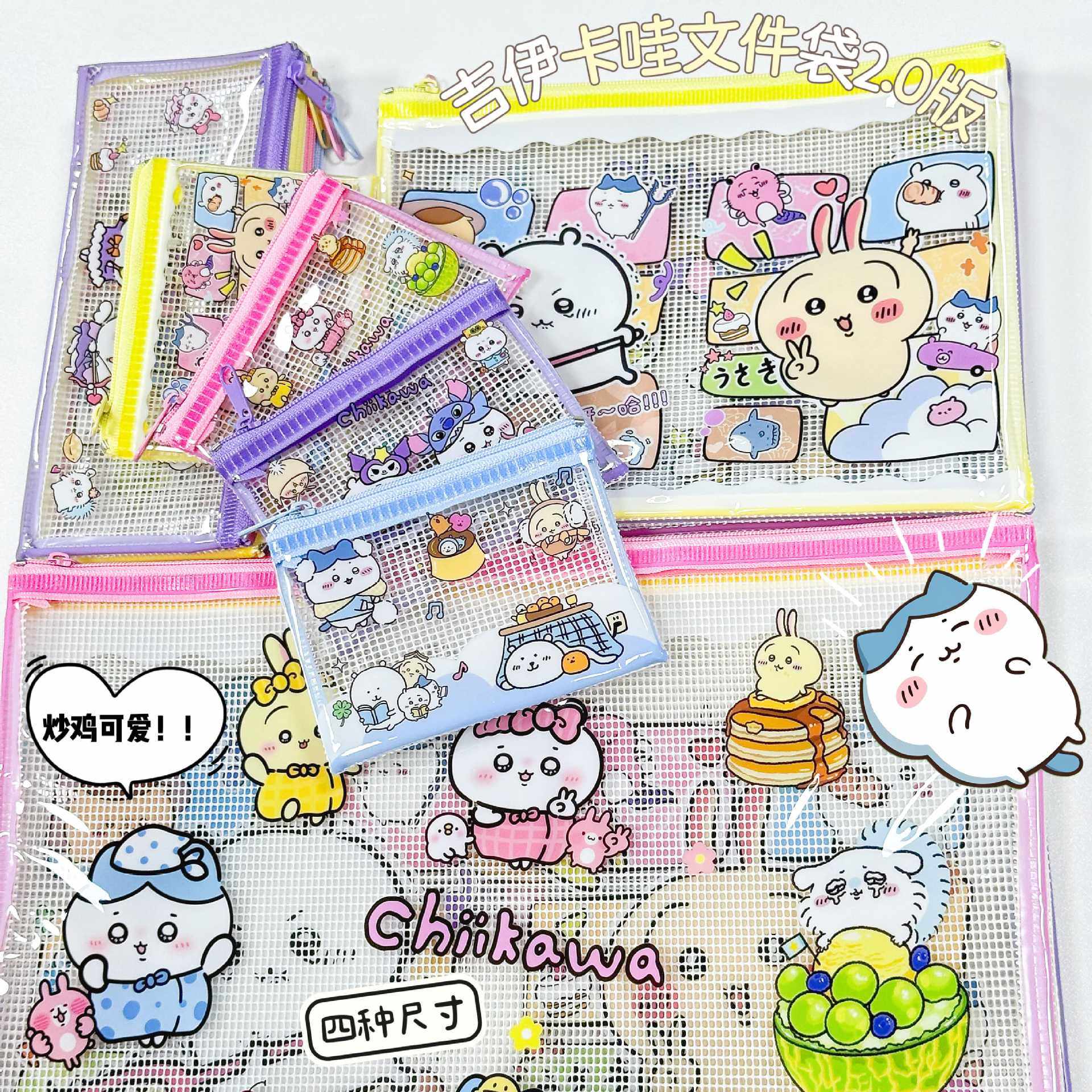 PVC网格文件袋学生补习袋A4A5收纳袋B6文具收纳拉链袋子零钱包包