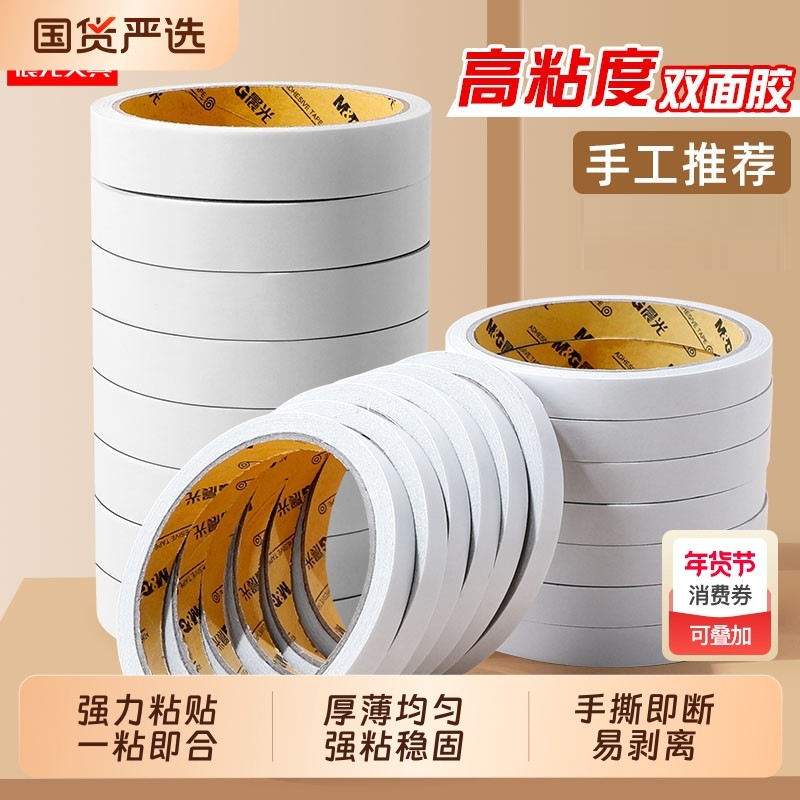 晨光双面胶高粘度强力固定不留痕儿童手工两面双面胶棉纸双面宽胶带学生用diy手撕超薄透明批发文具办公用品