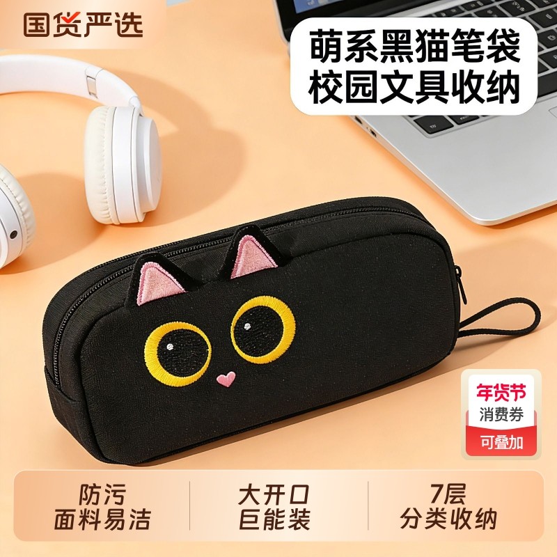 猫咪大容量笔袋高颜值ins风女生2025新款超火文具盒小学生儿童笔盒男生简约防水铅笔袋小众不撞款收纳手提