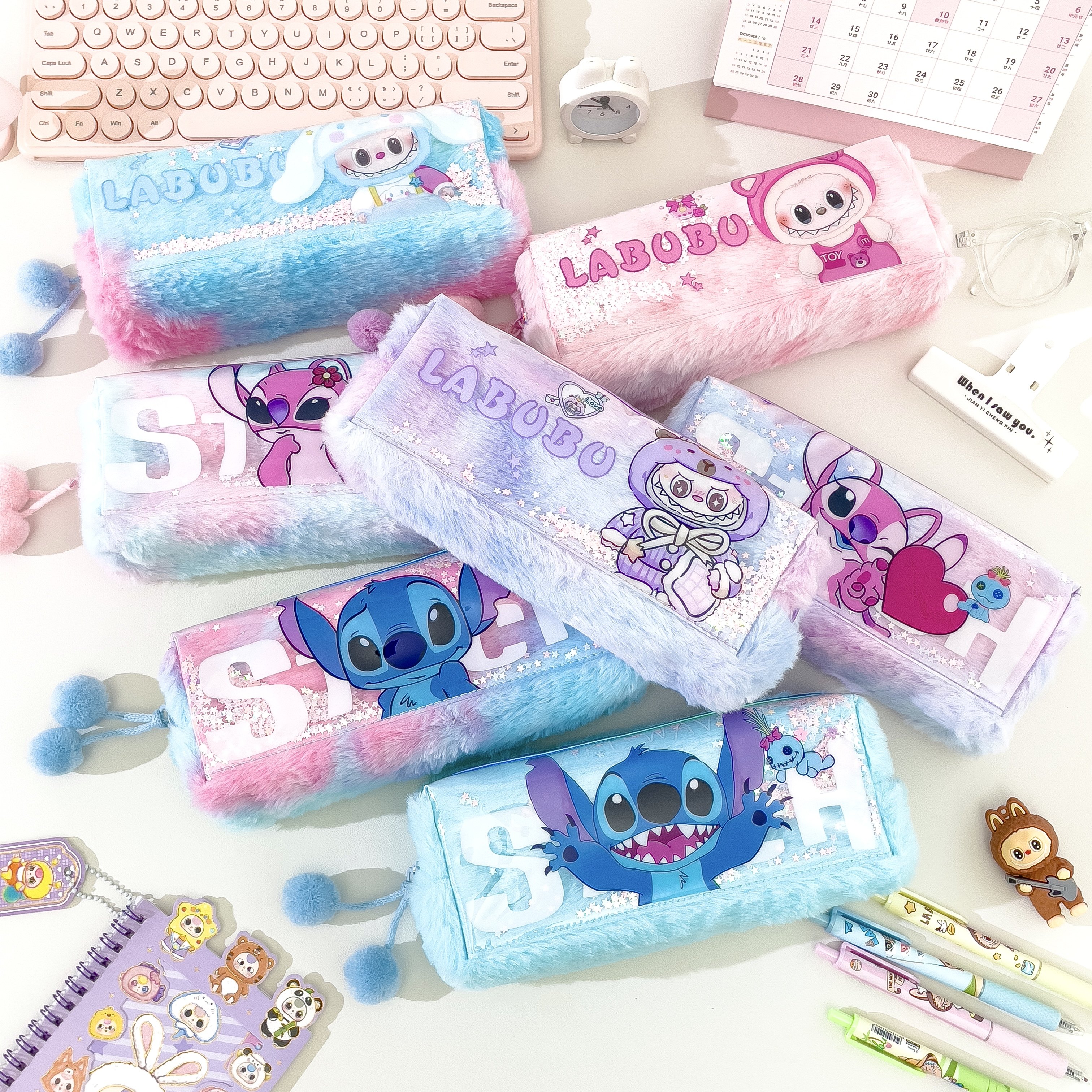 可爱毛绒绒大容量笔袋流沙卡通铅笔盒儿童小学生文具盒单层拉链袋
