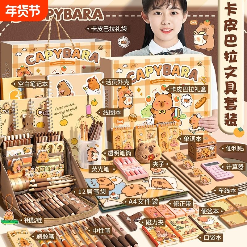 卡皮巴拉10岁女孩子的生日礼物文具套装礼盒礼物元旦大礼包实用