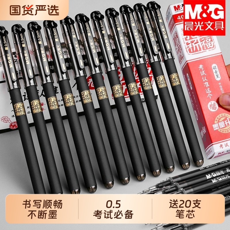 晨光孔庙中性笔0.5mm黑色孔庙祈福系列子弹头全针管学生考试专用速干顺滑刷题笔碳素笔签字笔文具用品不断墨