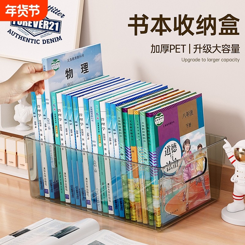 桌面书本收纳盒亚克力透明学生放书本书籍文具置物架整理箱文件筐