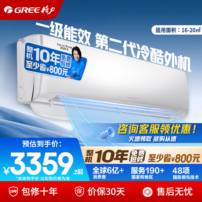 【官方自营】格力空调1.5匹冷静王/冷静王+一级能效变频冷暖挂机