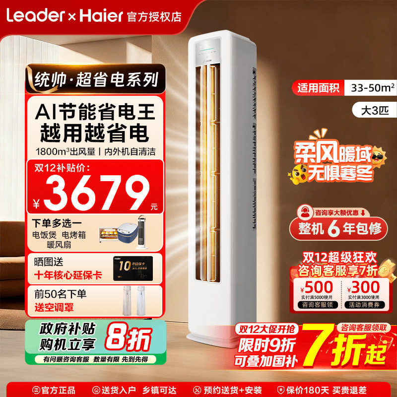 海尔空调3匹2匹家用一级能效变频统帅冷暖客厅立式柜机官方旗舰店