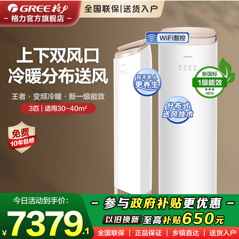 【格力官方】王者3匹柜机立式新一级变频上下风口客厅2匹空调正品