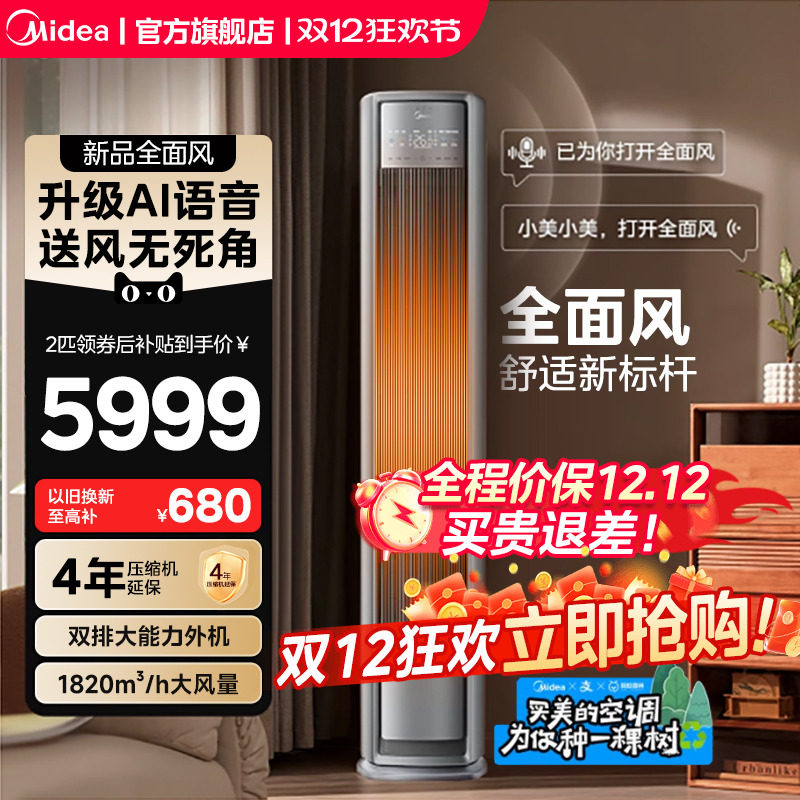 25年新品美的全面风p空调官方正品一级家用2P3匹变频客厅立式柜机