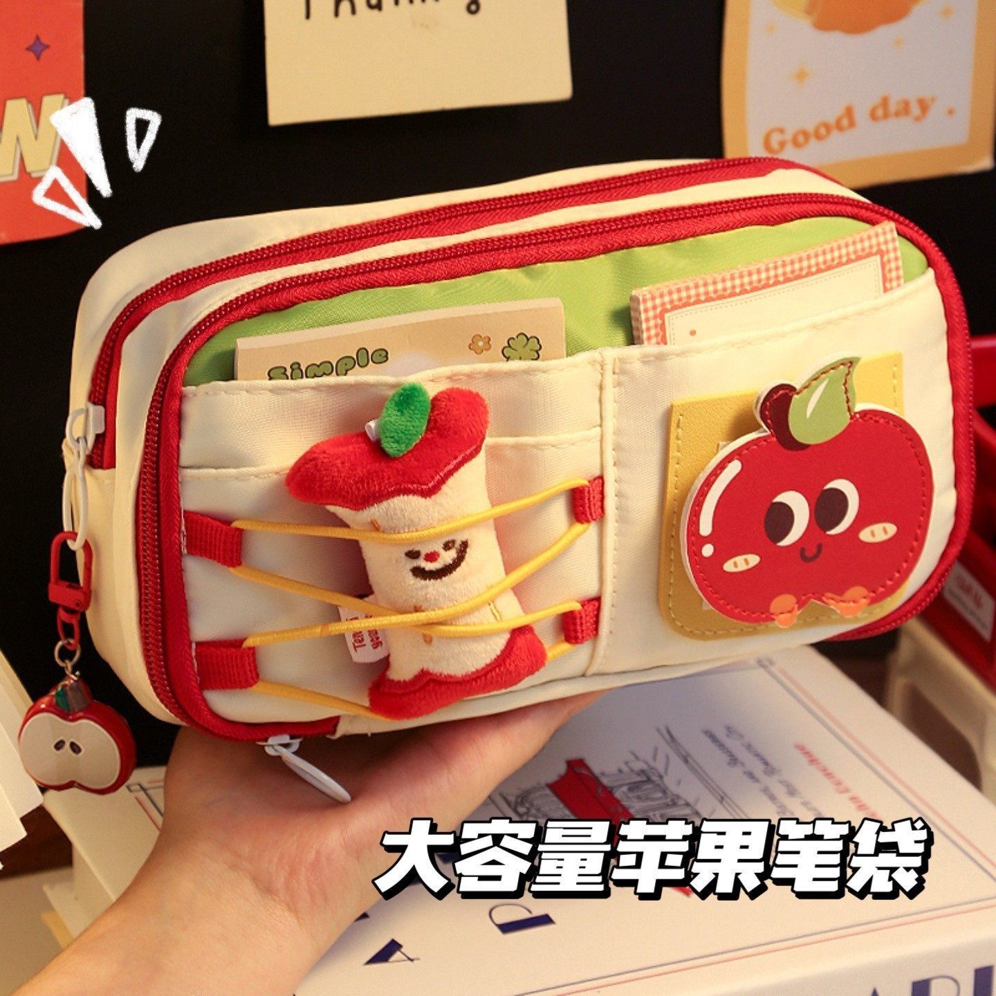 好运苹果笔袋可爱大容量女生2026新款小学生高颜值文具新年铅笔盒